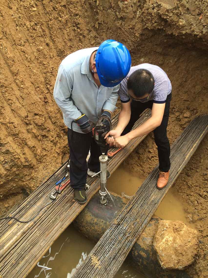 南陽某電廠插入式電池供電電磁流量計安裝現(xiàn)場