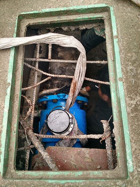電池電磁流量計(jì)替換大口徑機(jī)械式水表安裝現(xiàn)場